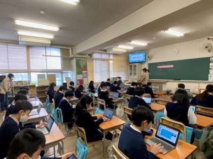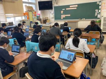 5年生の学習の様子です。総合科「Power Pointを使おう」です。