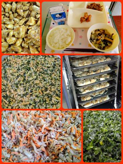 『鶏肉のみそバターソース』は、鶏肉を下味をつけて焼いたものに八丁みそやバター等を使用したソースをかけています。食べるとバターと八丁みその風味が口いっぱいにひろがりました。『五目汁』は、うすあげ、玉ねぎ、キャベツ、えのきたけ、わかめを使用した具だくさんの汁ものです。『きんぴらごぼう』は、豚肉とごぼう、にんじんを甘辛く味つけしています。ごはんによく合う献立で美味しかったです。