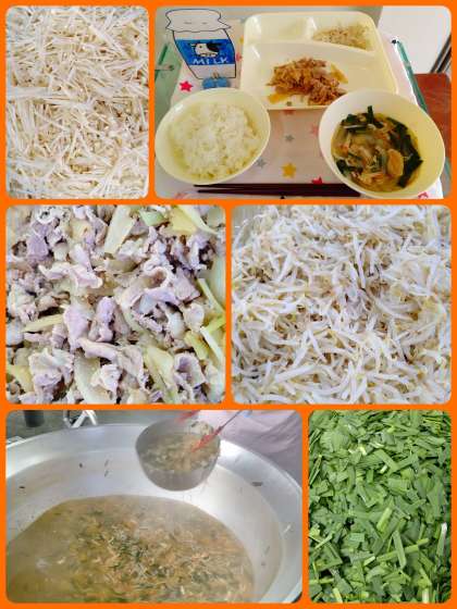 豚肉のコチジャンいため 鶏肉と春雨のスープ もやしのナムル ごはん 牛乳