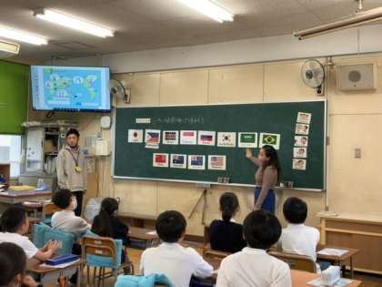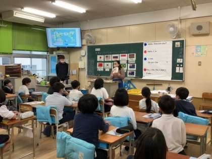 19日(水)は、4年生もMarivic先生と世界のあいさつについて学習をしました。Marivic先生から教えてもらった世界のあいさつをよく聞いて、発音よくリピートしていました。Good job!