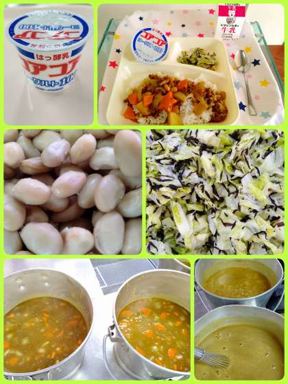 牛肉と大豆のカレーライス キャベツのひじきドレッシング ヨーグルト 牛乳