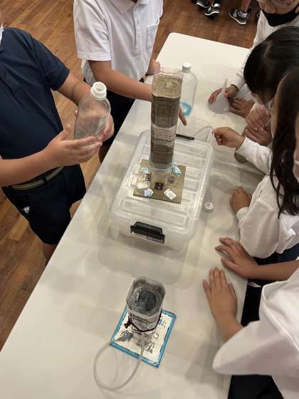 今日は社会見学で柴島浄水場に行きました。見学会や実験を通して、浄水場の役割、仕組み、働きなどを学ぶことができました。