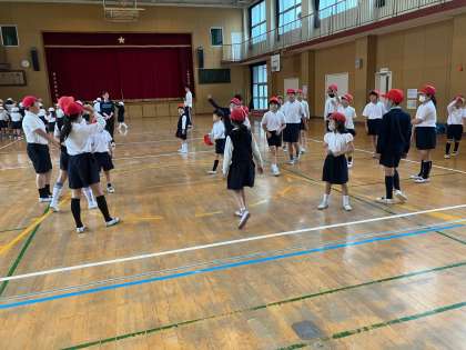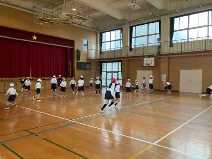 たてわり遊びは、講堂や運動場の割り当てがある時もあります。今日は、残念ながら雨が降っていたので運動場は使えませんでしたが、講堂では元気よく遊んでいました。