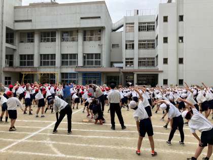 運動会の全体練習が始まりました。今日は開会式やラジオ体操の練習をしました。暑さが和らいでいて、練習にも集中して取り組めていました。