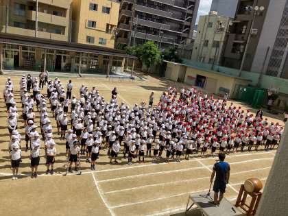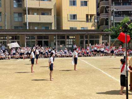 今日の運動会の全体練習は終わりの体操や閉会式、福島区民音頭をしました。応援合戦の練習もし、昨日より声がよく出ていて、ウエーブも上手にできました。明日も全体練習を予定しています。
