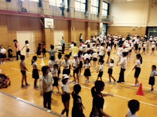 今日の(16日)2時間目に、区民音頭を学ぶ会を行いました。寿老会・女性会の皆さんに来ていただき、区民音頭の踊り方を教わりました。たてわり班の輪のなかに入って、すぐそばで踊ってくださったので、先生方の振りをしっかりと見ながら練習することができました。今日は天気が悪く、講堂で踊りました。本番は、秋晴れの下、今日来てくださった皆さん、保護者の皆さんと一緒に、運動場で楽しく踊りたいです。ぜひ、ご参加ください。寿老会・女性会のみなさん、本日はありがとうございました。