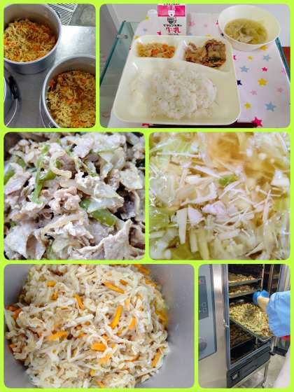 『豚肉のごまみそ焼き』は、ねりごま、赤みそ,こいくちしょう油などで下味をつけて焼いています。ごはんがすすむ献立で美味しかったです。『切り干し大根の煮物』は、児童に食べてほしい乾物食品のひとつです。たくさんの児童から「今日の給食おいしかったよ」と言う声が聞こえてきました。