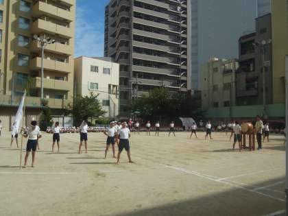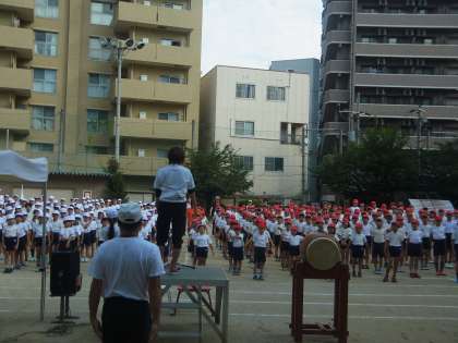 今日(18日)は、朝から良い天気となり、運動場で運動会の全体練習を行うことができました。これまで練習を重ねてきた応援団と全校児童の元気な声が、校庭に響き渡っていました。来週もう一度全体練習を行い、本番を迎えます。