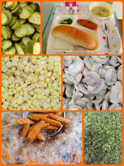 『サーモンフライ』は、児童に人気の献立です。さくっとあがっていてボリュームもありました。『豆乳スープ』は、ベーコンで旨みを出し、豆乳のまろやかさを生かしたスープです。パンによく合う献立で美味しかったです。
