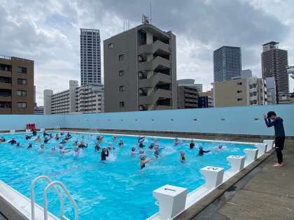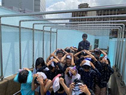 4年生は水慣れをした後、けのびやバタ足で泳ぎました。シャワーの水は少し冷たかったようですが、プールに入るとのびのび活動できていました。