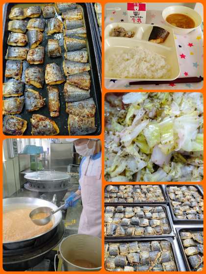 『さごしのつけ焼き』は、さごしに、ゆず果汁、料理酒などを合わせて下味をつけ、焼いています。ゆずの風味をしっかり感じる事ができる味つけとなっています。『キャベツの赤じそあえ』は、さっぱりとした味つけでごはんによく合う献立で美味しかったです。