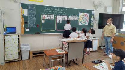 今日のテーマは、『食べもののはたらきをしろう』です。食べもののはたらきが3つあること、き、あか、みどりをそろえて食べることを勉強しました。