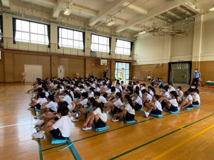 5・6年生は、交通安全に関するクイズにみんなで答えながら『交通安全すごろく』を進めていきました。途中でパネル等を活用して詳しく説明してくださったので、よく理解できていました。