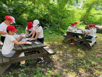 片づけが手際よくおわったので、予定より早く焼き板工作を始めました。初めは板を6面こすります。