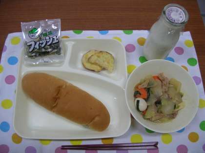 秋になると「さつまいも」がおいしくなりますね。今日の給食では、さつまいものてんぷらが出ました。油で揚げてから、塩をかけました。さつまいもの甘さが塩をかけることで引き立ち、とてもおいしかったです。1人2,3個しかありませんでしたが、喜んで食べていました。(栄養教諭)