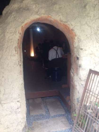 登り窯の中で、お昼ご飯を食べます。登り窯の中に入ることができるなんて、珍しい体験ができました。登り窯の入り口は、狭く、中はとても広くなっています。