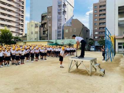 今朝は児童朝会を運動場で行いました。とてもさわやかな朝でした。図画の表彰や新しいサポーターさんの紹介がありました。今月の目標は「本をたくさん読もう」です。読書の秋、本にたくさん親しんでほしいと思います。