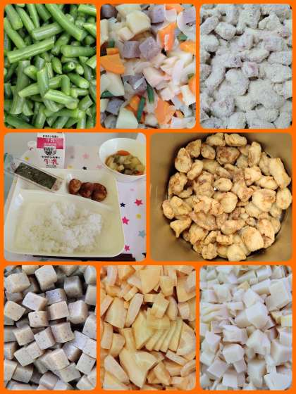 『みそカツ』は、手作りのフライです。タレは八丁みそと赤みそ合わせたまろやかな風味のみそダレをかけています。『じゃがいもと野菜の煮もの』は、じゃがいもを主材に、こんにゃく、たけのこなどを使用した煮ものです。ごはんによく合う献立で美味しかったです。