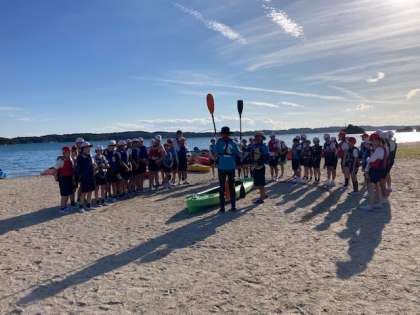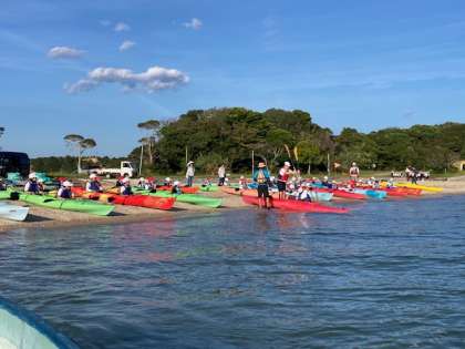 前半のシーカヤックチームは乗り方を教えてもらって、まもなく出航です。
