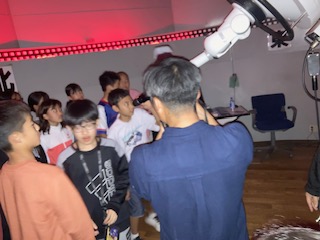 夕食後に、クラスごとにお土産を買ったり、天文館に行って天体望遠鏡で星を観察したりしています。