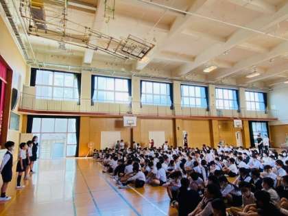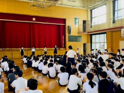 今朝の児童集会は「今日のラッキーパーソン」でした。集会委員の子たちが出したお題についてあてはまるものが多い人は、今日のラッキーパーソンでした。結構ラッキーパーソンがいてびっくりでした。