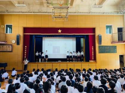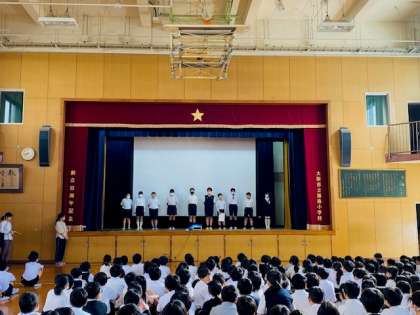 児童集会の後に、図書委員会の発表がありました。来週から始まる読書週間についてお知らせを行いました。低・中・高学年ごとに人気のある本の紹介もありました。