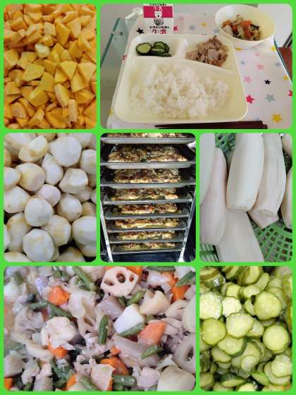 『豚肉のねぎじょうゆ焼き』は、豚肉と白ねぎに、甘辛いしょうゆダレの下味をつけて焼いています。『ふきよせ煮』は、鶏肉、旬のさといもやれんこん、しめじなどを使用した煮ものです。ごはんによく合う献立で美味しかったです。