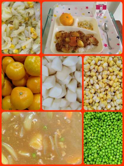 ポークカレーライス[米粉] サワーソテー みかん 牛乳