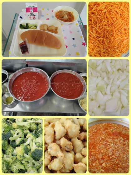 『白身魚フリッター』は、白身魚はフワフワころもはサクサクです。『ミネストローネ』は、鶏肉、キャベツ、たまねぎ、トマト(缶)、にんじん、パセリを使用し、にんにくとオリーブ油で香りよく仕上げた具だくさんのスープです。パンによく合い美味しかったです。