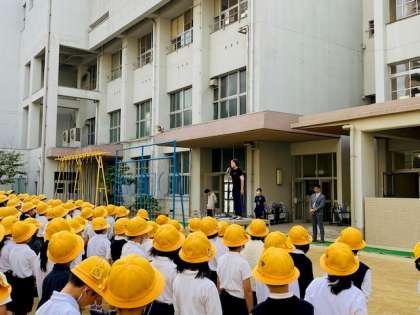 昨日の児童朝会は、久々に運動場で行いましたが、子どもたちは並ぶ場所を忘れず静かに集合することができました。校長先生から職場体験で本校に来る中学生の紹介がありました。今日から2日間、いろいろな体験をしてながらしっかりと学んでほしいと思います。