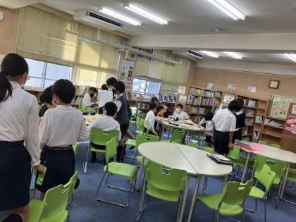 集会委員会は次回の集会、運営委員会はスポーツ集会に向けての準備を行っていました。図書委員会は読書週間に向けて作成していたしおりを各学級に振り分けていました。しおりは読んだ冊数やページ数に達した児童に渡されます。