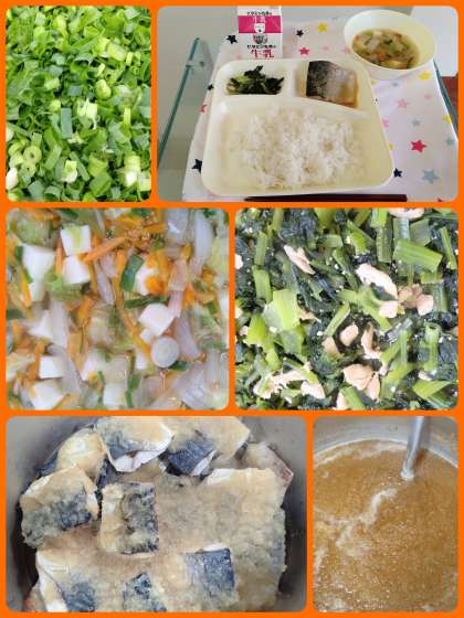 さばのみぞれかけ すまし汁 こまつなの煮びたし ごはん 牛乳
