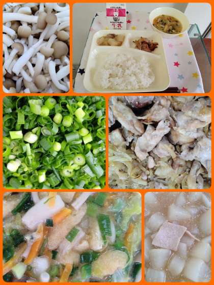 鶏肉の甘辛焼き みそ汁 だいこんの煮もの ごはん 牛乳