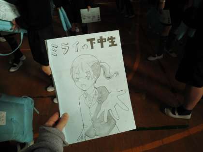 下福島中学校から生徒会の方が来られ、中学校生活について教えてくださいました。動画や冊子を用いて、学校の様子や部活動について説明してくださいました。