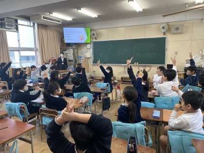 院内学級の一日の流れや過ごし方のクイズやお話を聴き、自分たちと同じところや院内学級ならではの過ごし方を知りました。