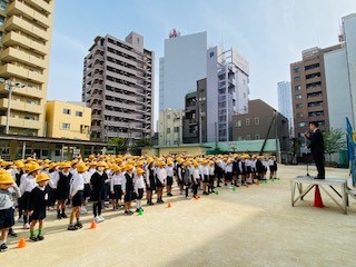 今朝、運動場で今年度初めての児童朝会がありました。1年生も揃っての朝会でした。校長先生からあいさつをがんばろうという話がありました。明日から元気なあいさつが聞こえることを楽しみにしています。