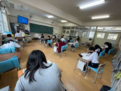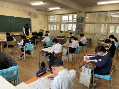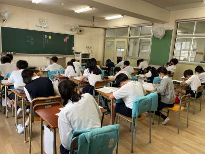 今日、6年生を対象に全国学力学習状況調査がありました。国語と算数を行いました。みんな真剣に取り組んでいました。