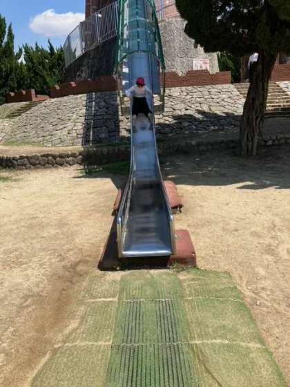 大きな滑り台やアスレチック遊具もあり、時間いっぱい楽しみました。