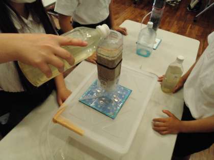 水をきれいにする実験では、だんだんと水がきれいになっていく過程を目の前で見ることができ、楽しく学習することができました。