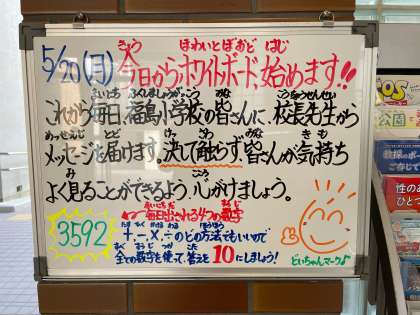 校長先生から福島小学校のみなさんに、ホワイトボードでのメッセージが届くことが知らされました。どんな内容か、楽しみです。