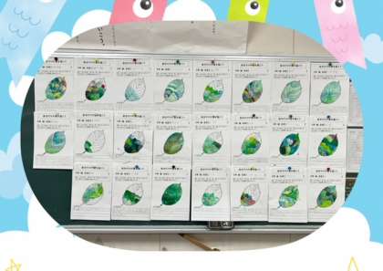 今日の図工は、絵の具を使って混色の練習をしました。