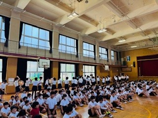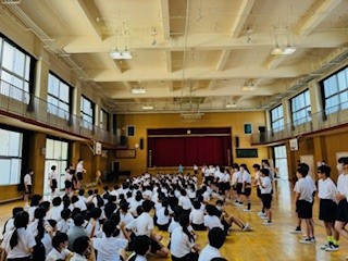 今朝の児童集会は、「ジェスチャー伝言ゲーム」でした。みんなしっかりとジェスチャーを覚えて次の人に伝えることができました。最後の問題はかなり難しかったのですが、ほぼ完璧に伝わっていました。