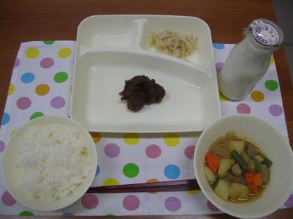 「くじら」は、年に1回しか使えない食材です。毎年、調査捕鯨の肉を給食用に確保してもらっています。「まぐろのオーロラ煮」は1年に2回ぐらいありますが、まぐろよりくじらの方がやわらかく出来上がりました。子どもたちはしっかり食べていました。子どもたちから「たれはケチャップとしょうゆを使っているの?」などたくさんの質問がでていました。ケチャップ4g、砂糖1.4g、赤みそ1.7gを合わせて煮たものが、オーロラ煮のたれのレシピです。(栄養教諭)