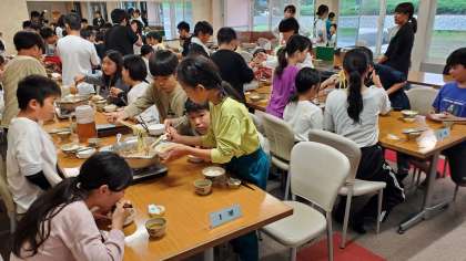 鴨鍋を見て「おいしそう!」と歓声があがりました。