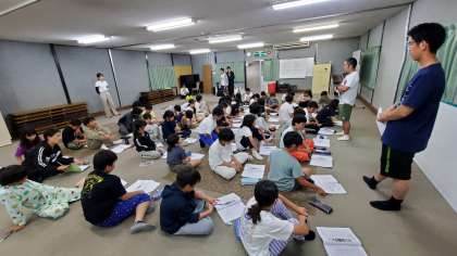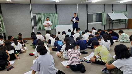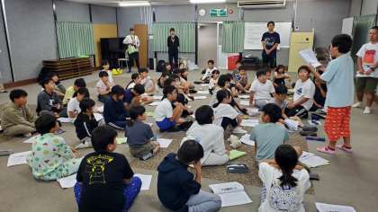 ナイトハイクを終え、大広間に全員集合して振り返りを行いました。