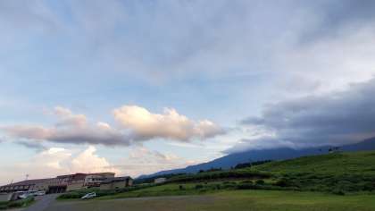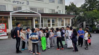 ひぐらしのなき声が聴こえる夕暮れ時、キャンプファイヤーを担当する子どもたちがファイヤー場に向け先発しました。