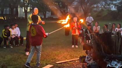聖なる火が点火され、いよいよキャンプファイヤーの始まりです!