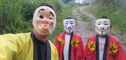 5年生のテーマソングにつられて、火の神と火の精が入場してきました。