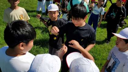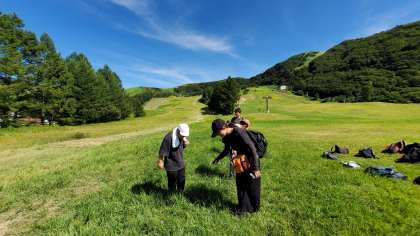 草の上に寝転がり空を見上げる子ども、山の中腹まで上がり、もう一度景色を眺める子どもなど、限られた時間ではありましたが、思い思いの方法で過ごしました。