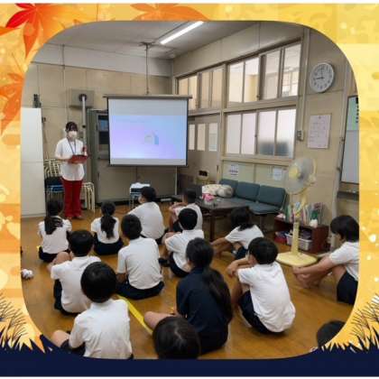 今日は、発育測定の前に、保健の先生から校内での安全な過ごし方についてのお話をしてもらいました。